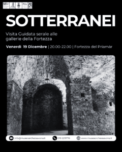The guided tour will depart at 8 p.m. from the Ponte di San Giorgio bridge, in front of the monumental gate of the Fortress. Accompanied by our archaeologists, you will discover the underground passages of the Fortress, exploring some of the underground tunnels, including Santa Caterina and Santissima Concezione. The tour is expected to end at 10 p.m.